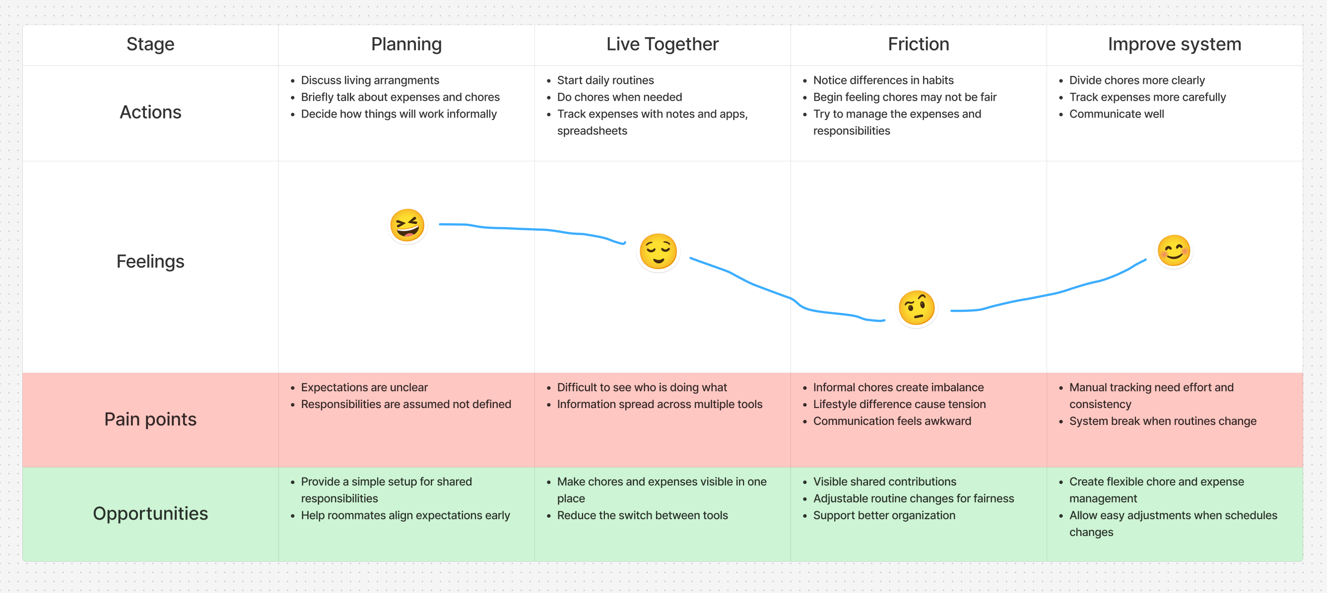 Before the research, I assumed that shared expenses would be a major source of conflict. However, the interviews showed that most people manage expenses well using apps.