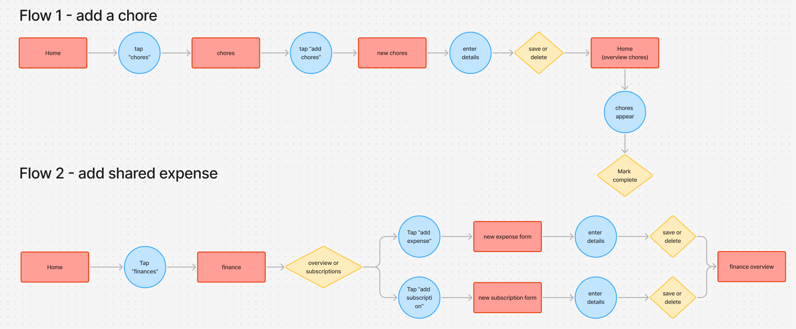 Outlines two primary tasks. The structure minimizes friction and ensures users can quickly return to an updated overview after completing action.