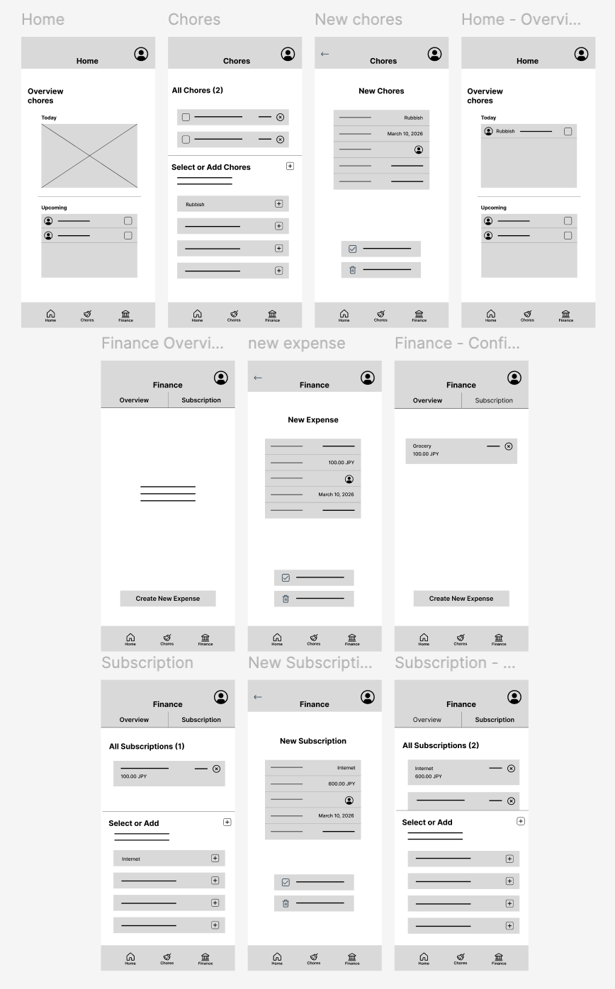 Based on the research insights, I focused on three principles : making responsibilities visible, keeping it simple, and support fairness without creating tension.